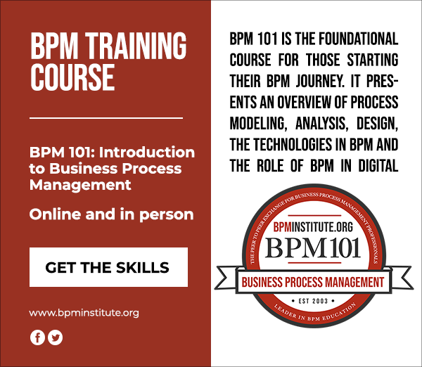 BPM 101 is the foundational course for those starting their BPM journey. It presents an overview of process modeling, analysis, design, the technologies in BPM and the role of BPM in digital transformation.